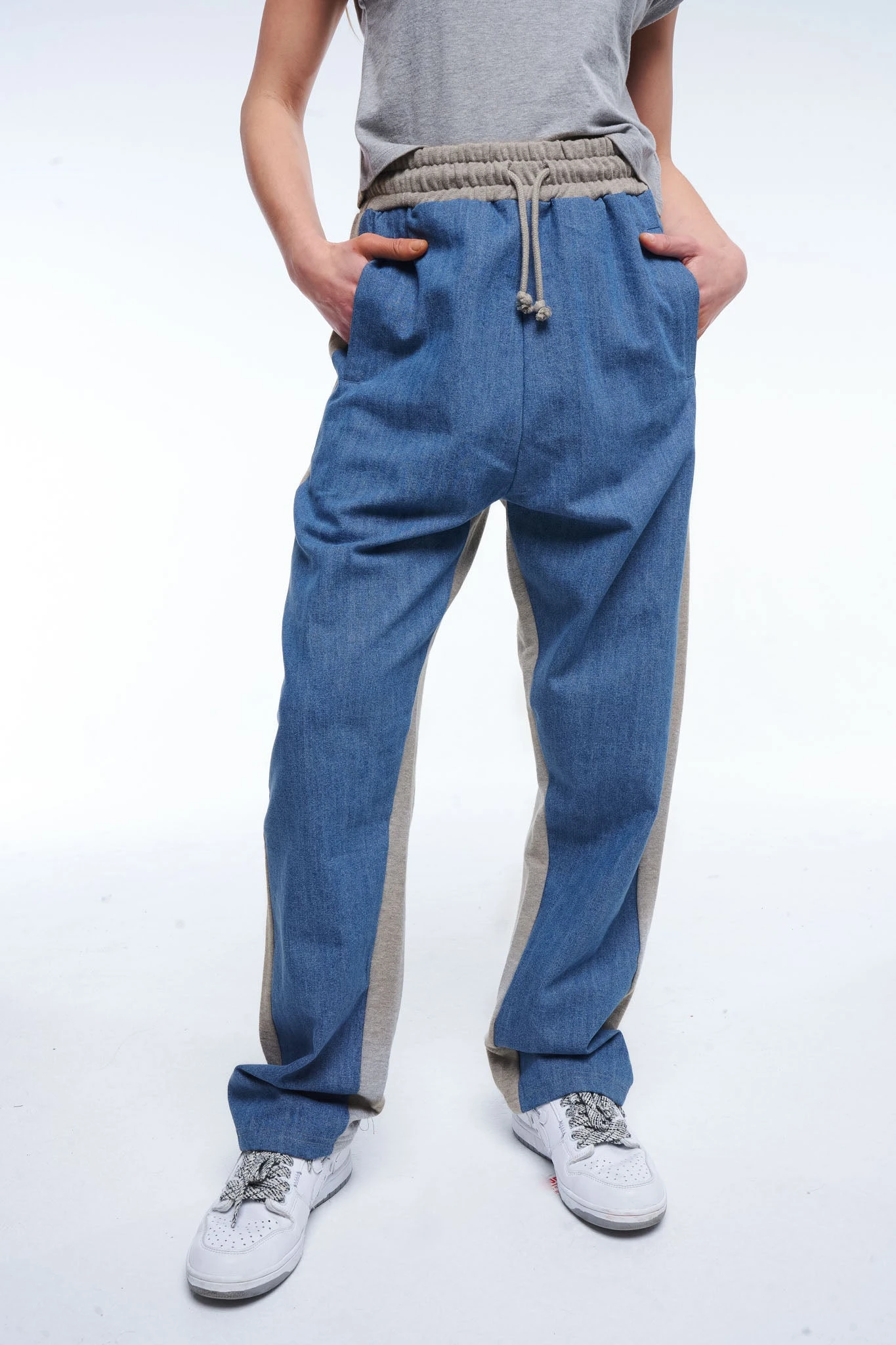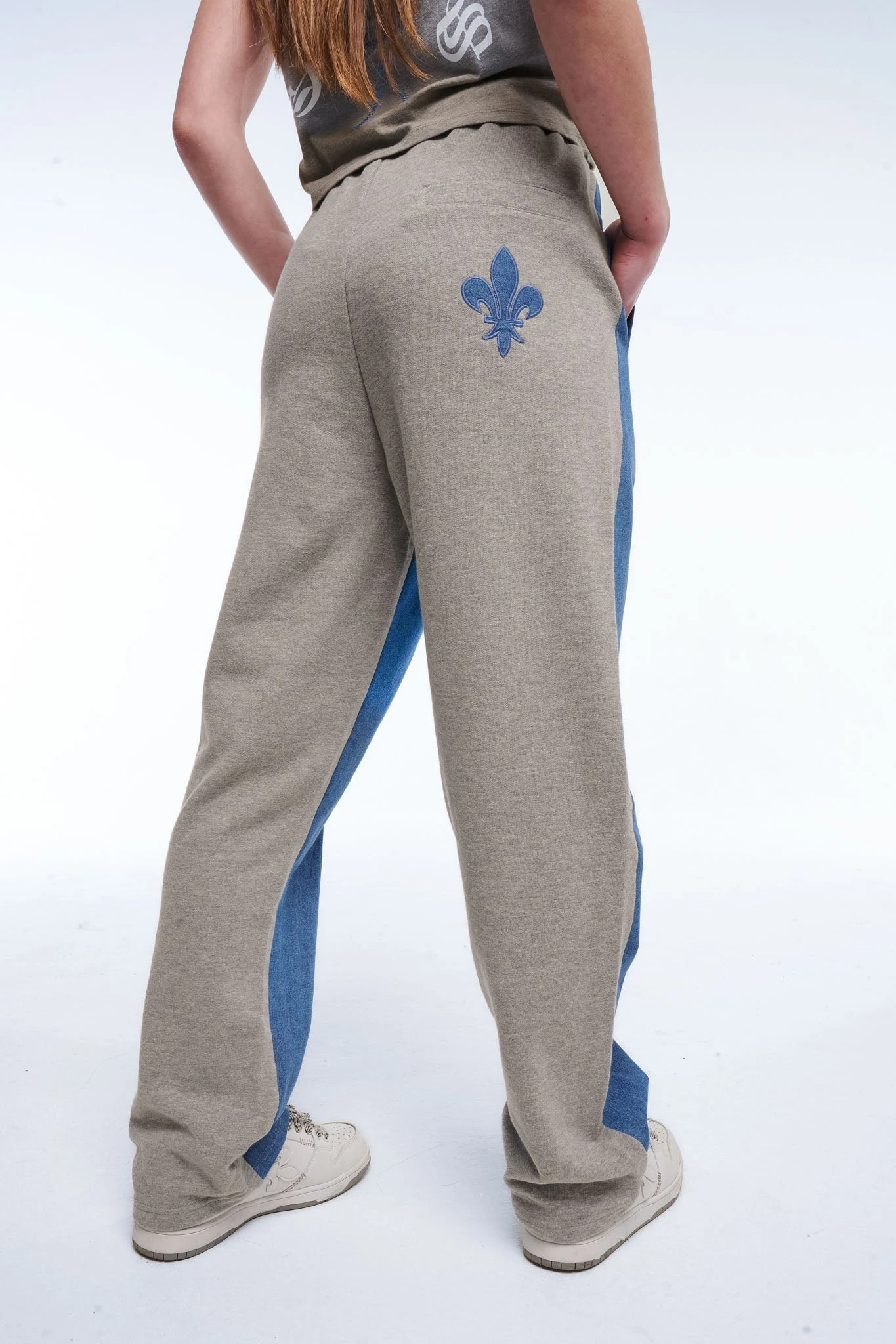 - Devant en tissu effet jean, dos en molleton gris chiné